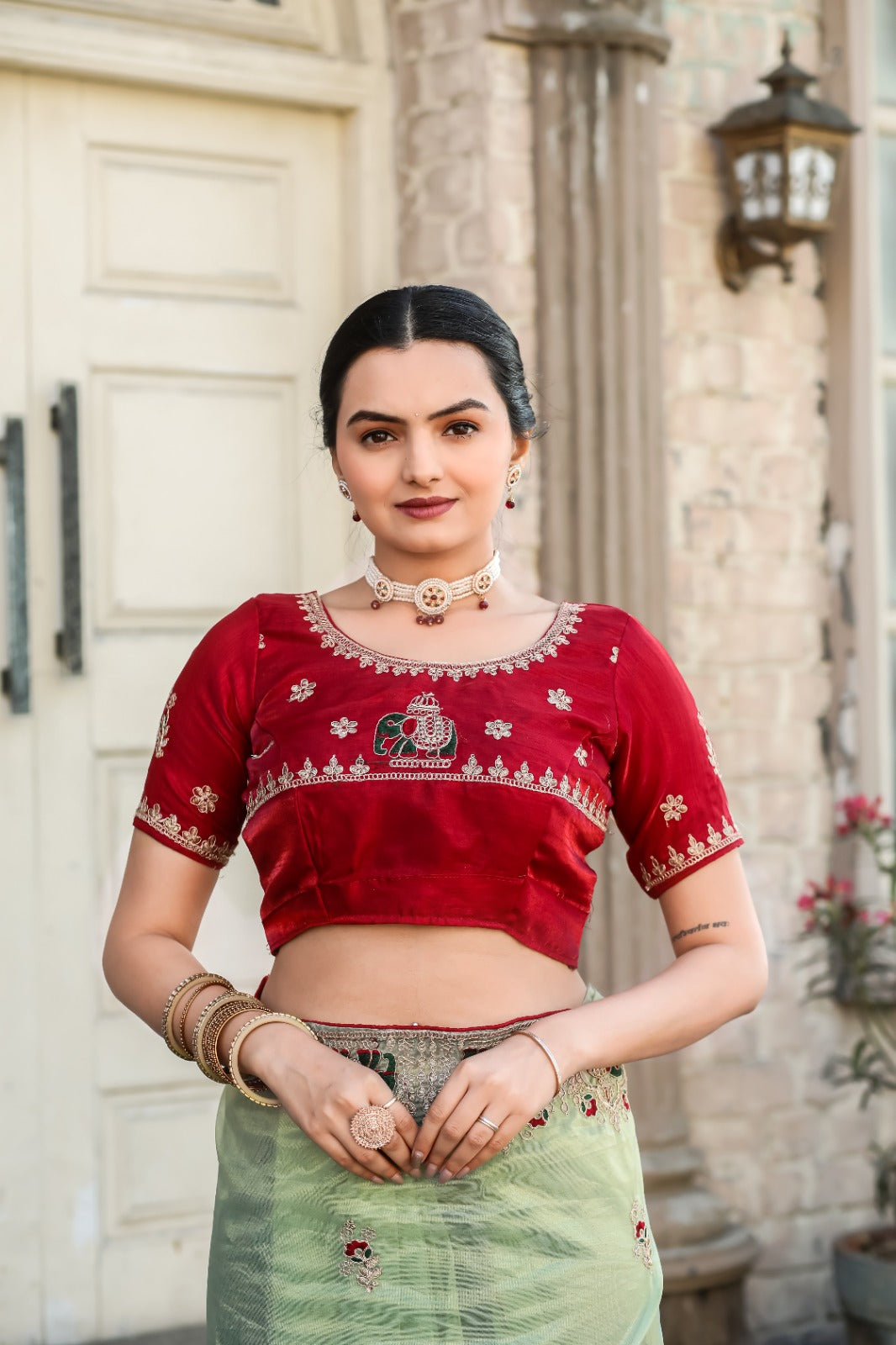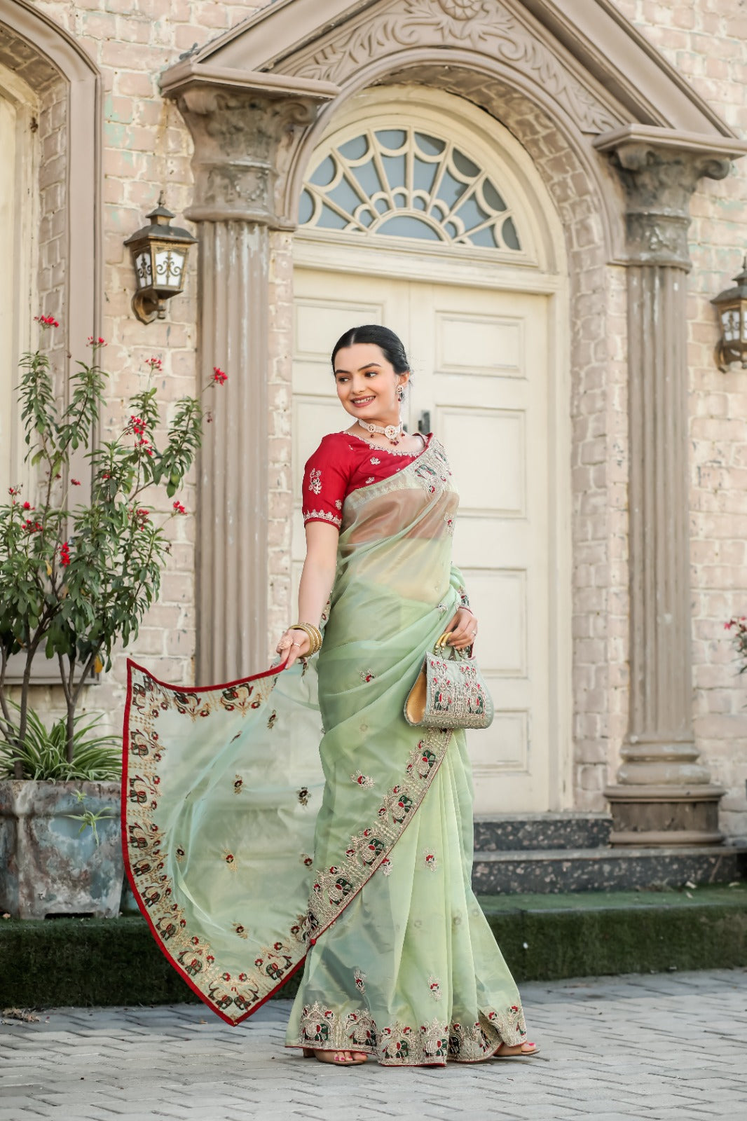 Gajanand Green Net Saree with Heavy Embroidered Border