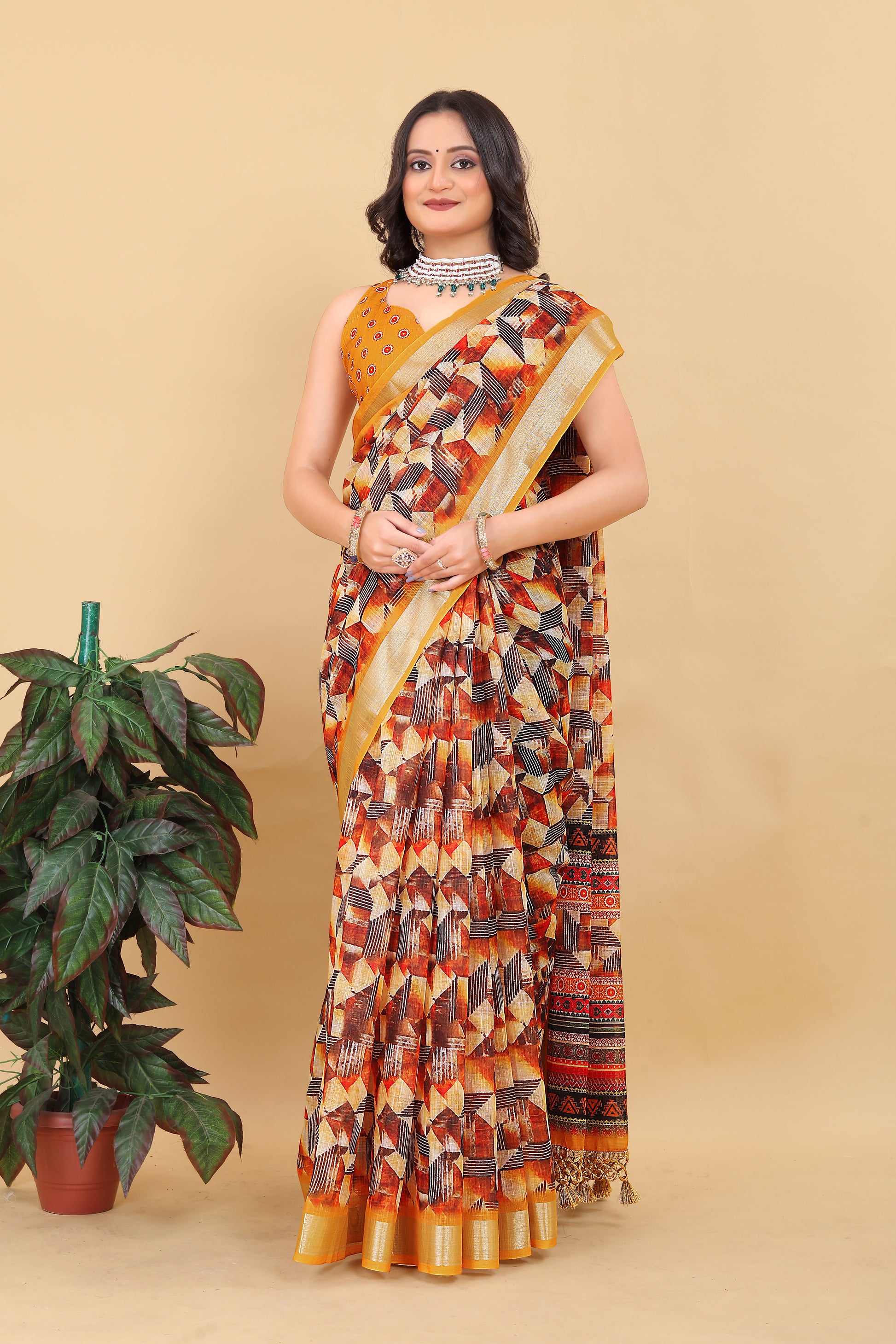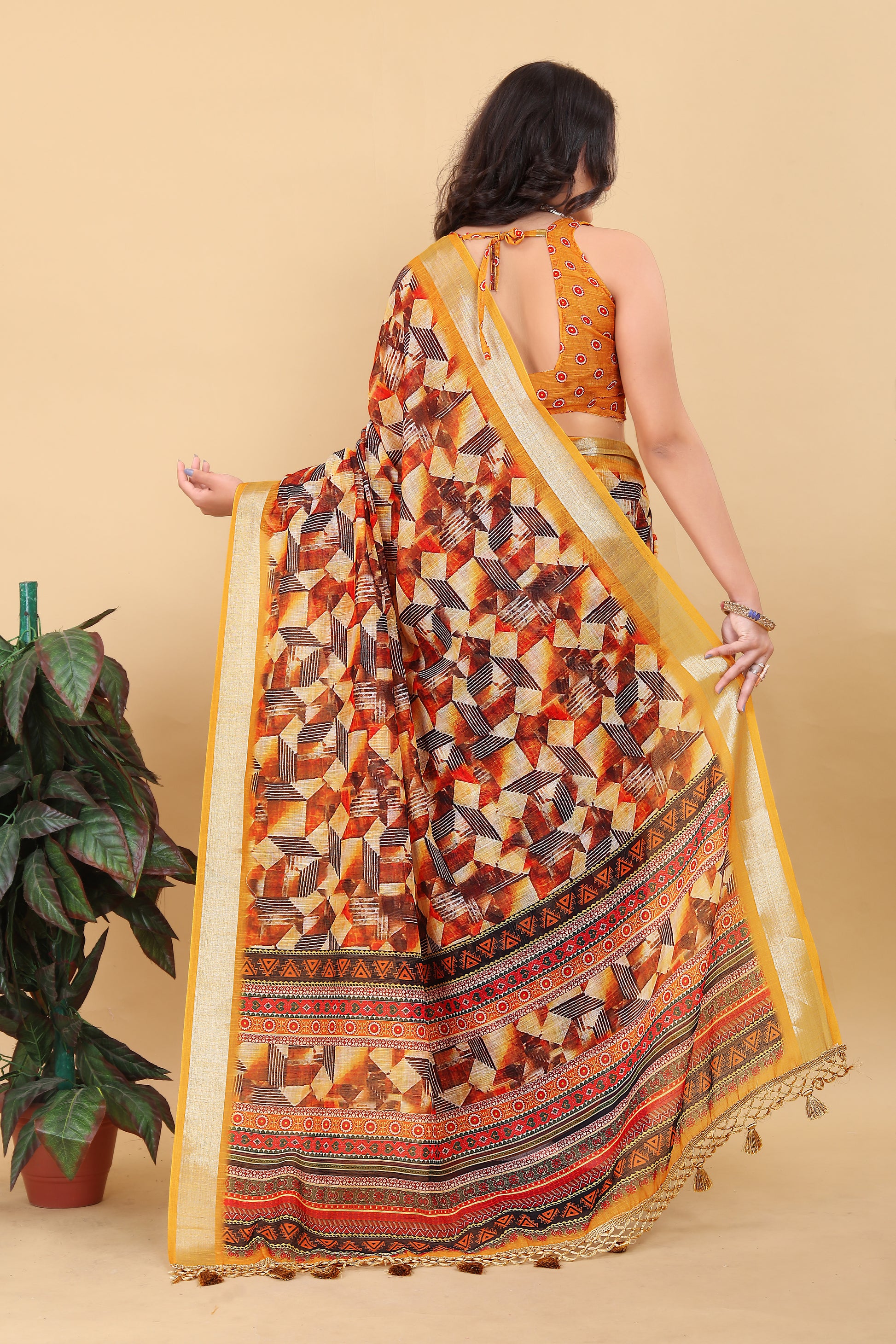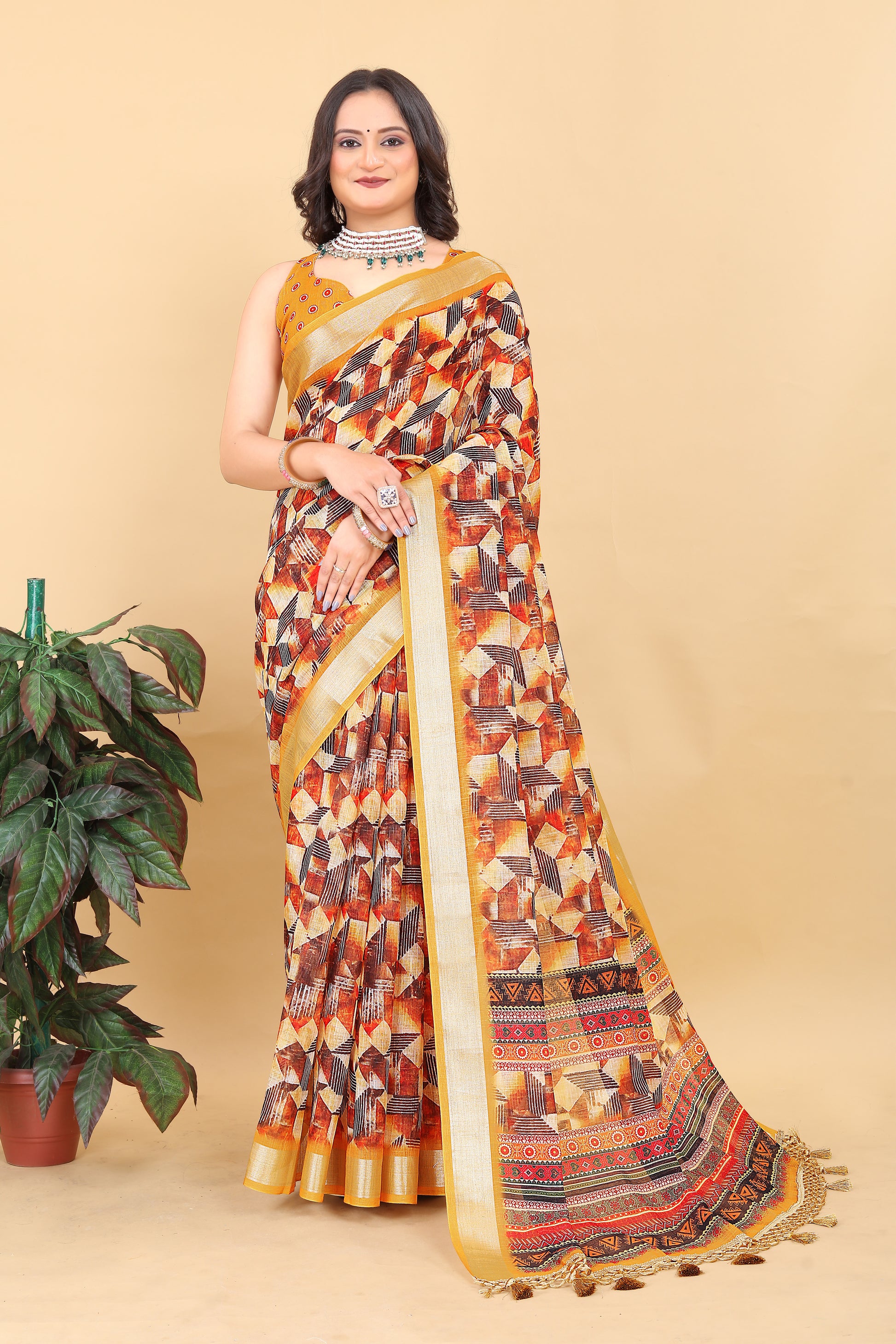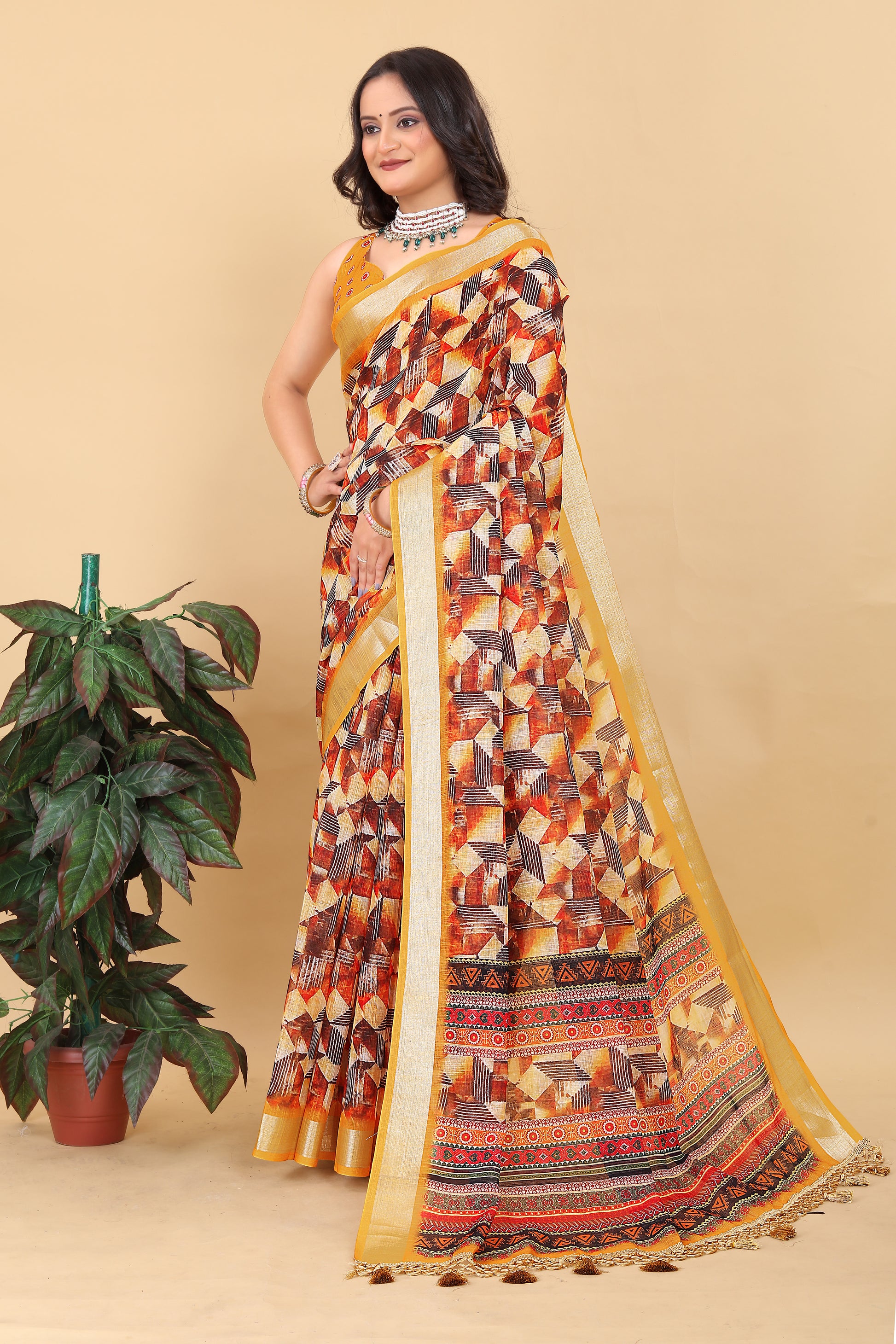 Juhi Yellow Cotton Printed Saree with Artistic Pallu