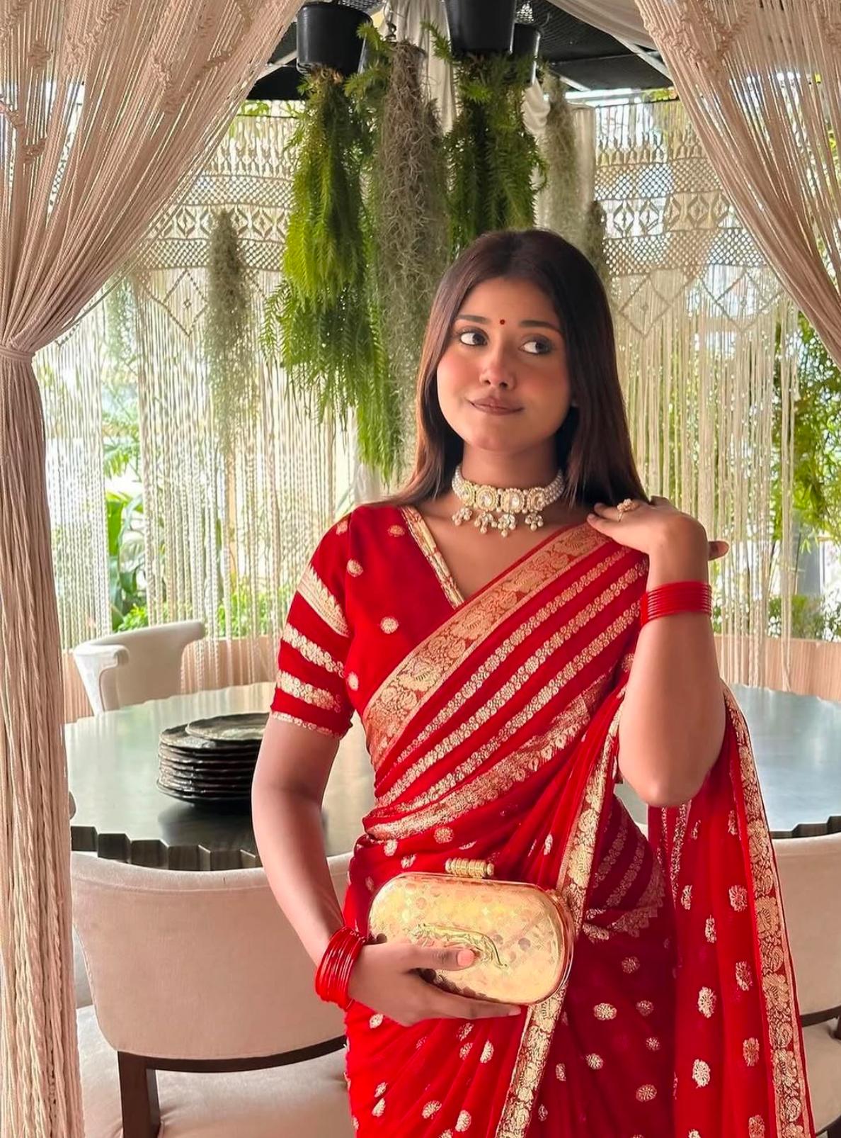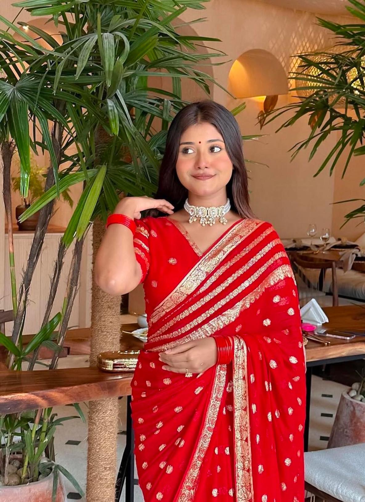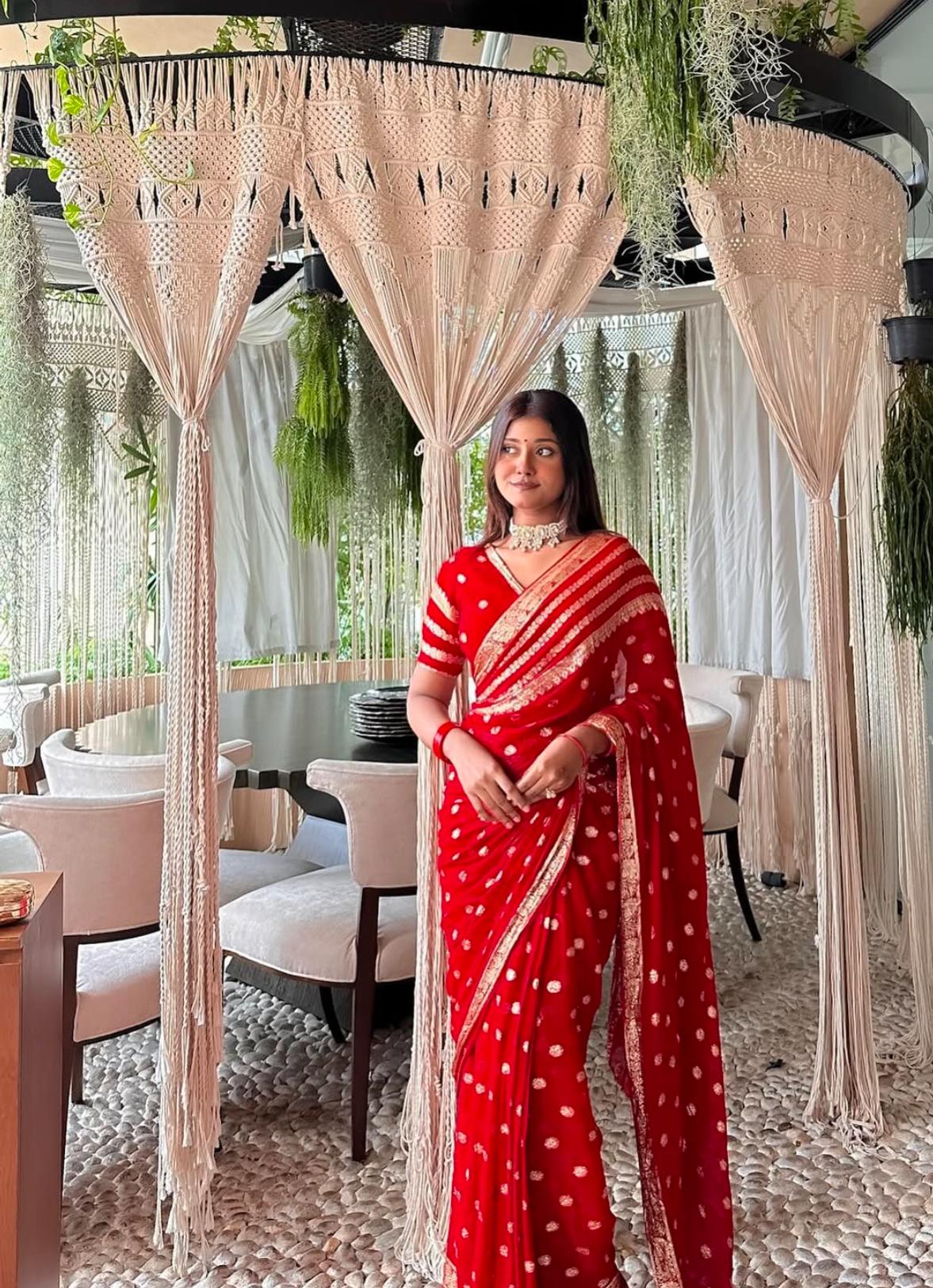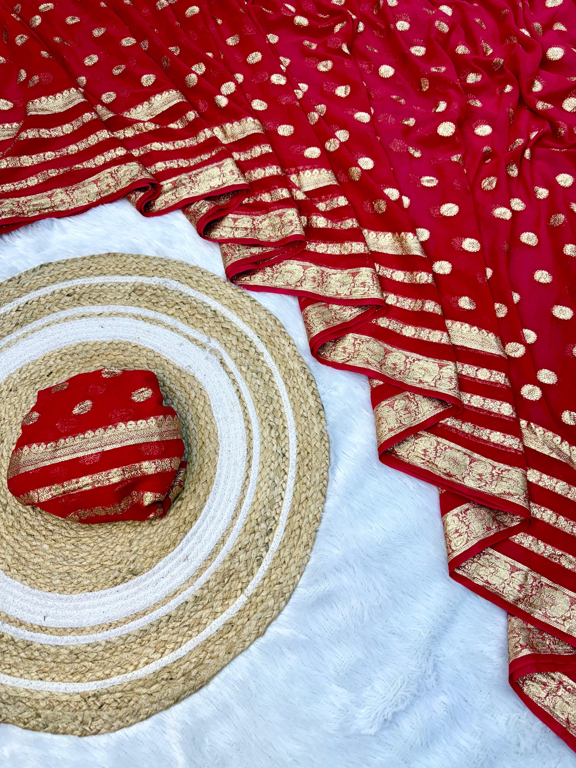Red Georgette Saree with Elegant Motif Detailing